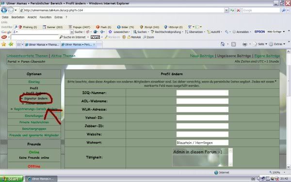 dafür gehst du bitte rechts oben in den persönlichen Bereich, dann wählst du links Profil, Signatur ändern.